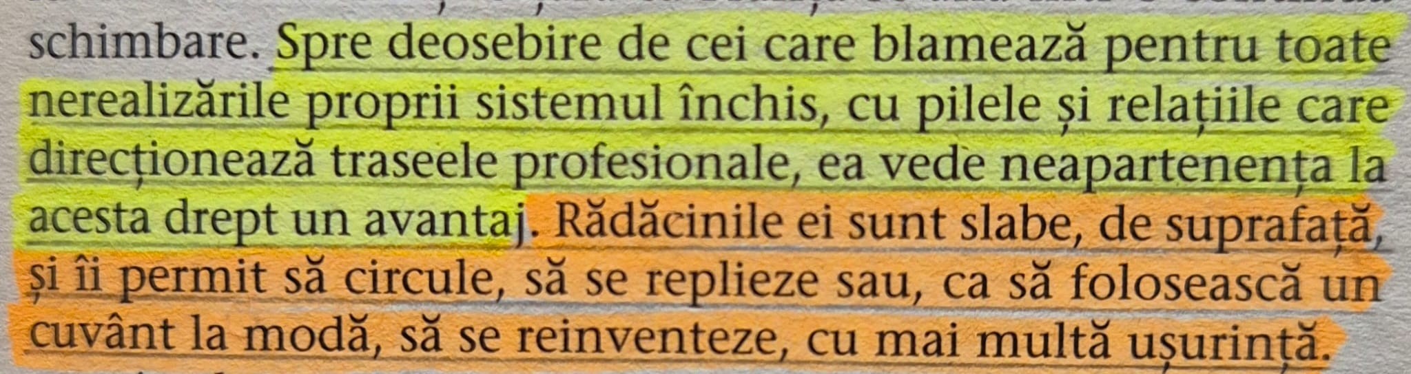 9. Un ritm constant al romanului. „Dezrădăcinații” începe bine, parcă prea bine ca scriitorul să poată menține ritmul, mi-am spus. Când credeam că nimic nu mă mai poate uimi, urmează partea a doua a romanului în care o paletă de personaje, excelent creionate, ne împărtășesc propria viziune despre dispariția Anei. Asta e partea cea mai strălucita a romanului, mi-am spus din nou. Mai mult nu se poate! Dar, spre încântarea mea și în partea a treia, Cătălin Ceaușoglu, reușește să păstreze ritmul. Finalul neașteptat (motivarea dispariției Anei), declarația de dragoste aproape șoptită, pe care un personaj o face României și reorientarea carierei, aceluiași personaj, din zonă televiziunii într-un domeniu nou, fac loc speranței. Limitată, dar suficientă astfel încât să devină o variantă de luat în calcul, atât pentru personaj, cât și pentru cititorii. „Capătul unei lumi poate fi foarte bine începutul alteia. Totul e să mergi mai departe.”