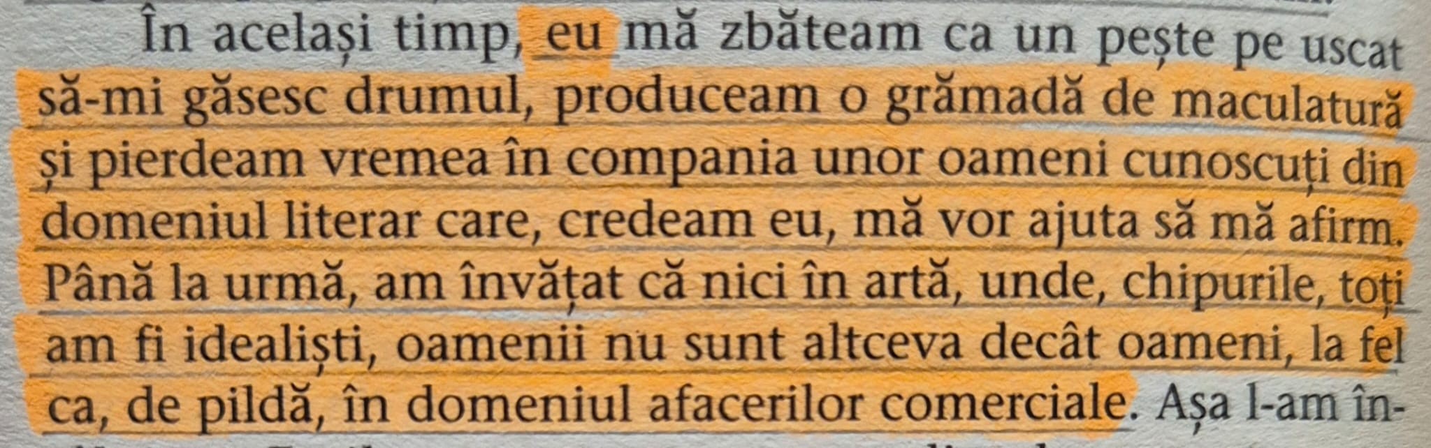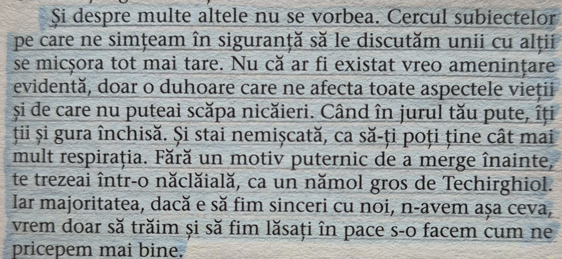 2. Subtilități care fac diferența. Nicu Ghenea este un personaj care se dezvăluie gradat. Când cititorul este convins că i s-au epuizat ideile, ei bine, acest monstru mai inventează ceva. Despre limbajul vulgar folosit în cărți am mai spus și o voi spune în continuare, acest limbaj este apanajul torționarilor. De fiecare dată când un scriitor îl folosește într-un roman, în context nepotrivit, ei au învins. Apare și în „Dezrădăcinații” și am fost dezamăgită, dar pentru că aveam în față un text cum nu mai întâlnisem în literatura română, i-am mai dat o șansă. Cătălin Ceaușoglu (din tot ce am citit până acum, posibil să mai fie cărți la care încă nu am ajuns) este primul scriitor care asociază trivialitățile cu personajul potrivit. Și tot Cătălin Ceaușoglu arată cum intoxică acest personaj lumea din jur. Subalternul lui Ghenea, plutonerul-adjutant Vasile, deși un om bun, expus zilnic la explozia de trivialități, preia limbajul. Și când un om bun vorbește ca ei, ei au învins. Aceste subtilități sunt bine punctate în „Dezrădăcinații”.