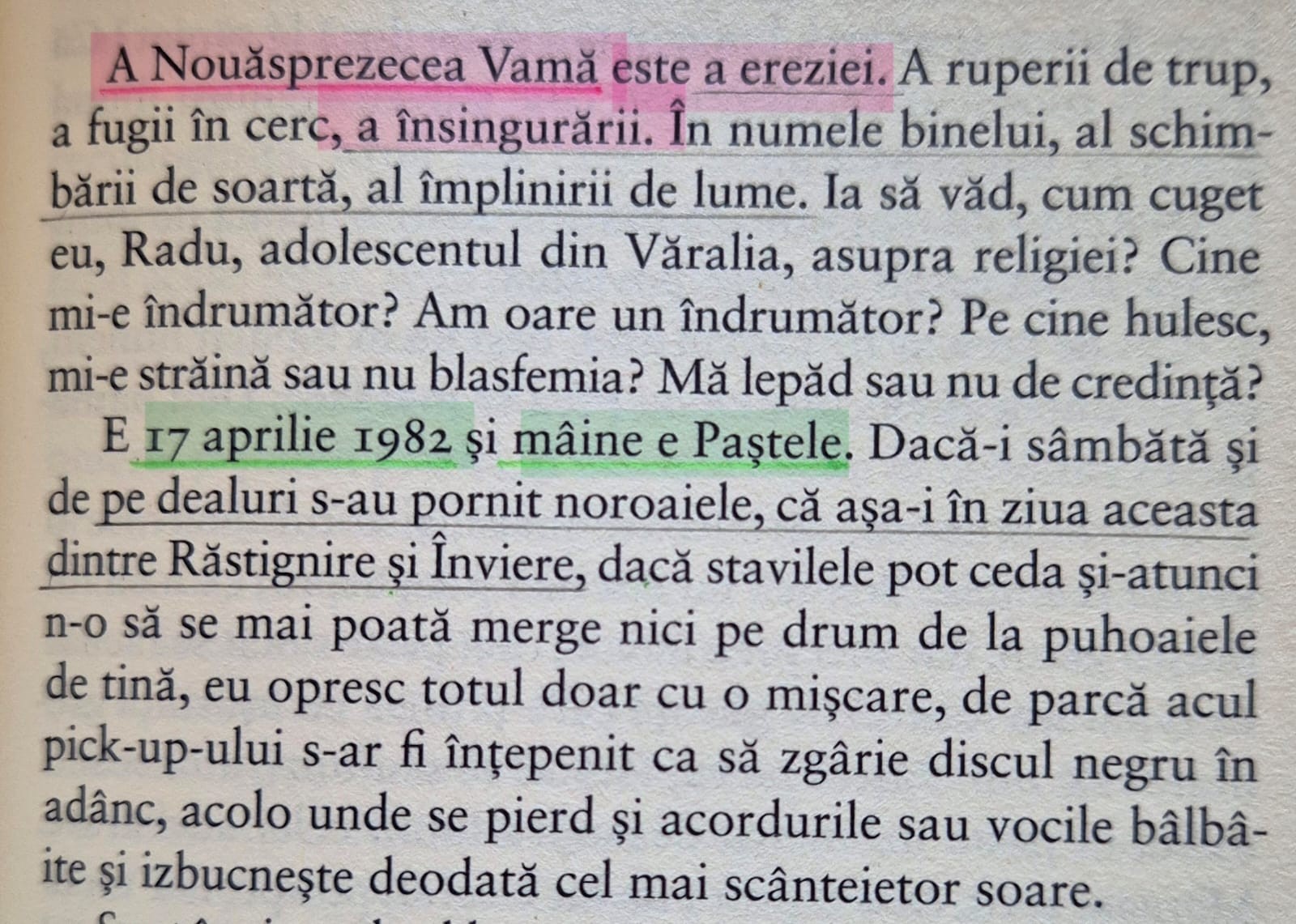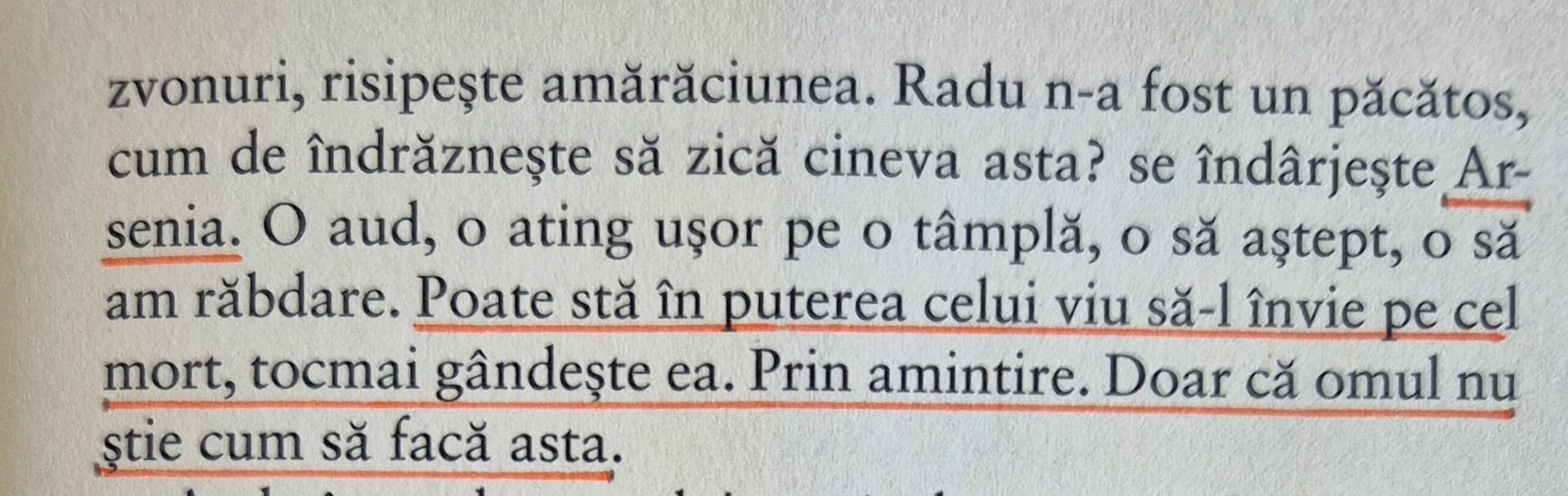 Iubirea în perspectiva lui Radu. „Dragostea nu se furișează, nu se ascunde, nu e cu gura cusută. Dimpotrivă, strigă din toate încheieturile. Dragostea e limpede și cristalină. Ne ține-n chihlimbar pe noi, cei doi adolescenți care am fost cândva.” Dacă, acolo în Germania, Helga s-a mai gândit la Radu, vă las să descoperiți din carte.